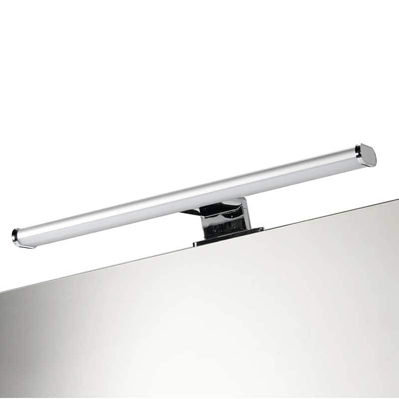 El LUKA es un aplique de baño LED de diseño estilizado y acabado cromado, perfecto para aportar una iluminación elegante y uniforme en la zona del espejo. Su formato tubular ofrece una distribución de luz amplia y agradable, ideal para el uso diario en ambientes de baño.