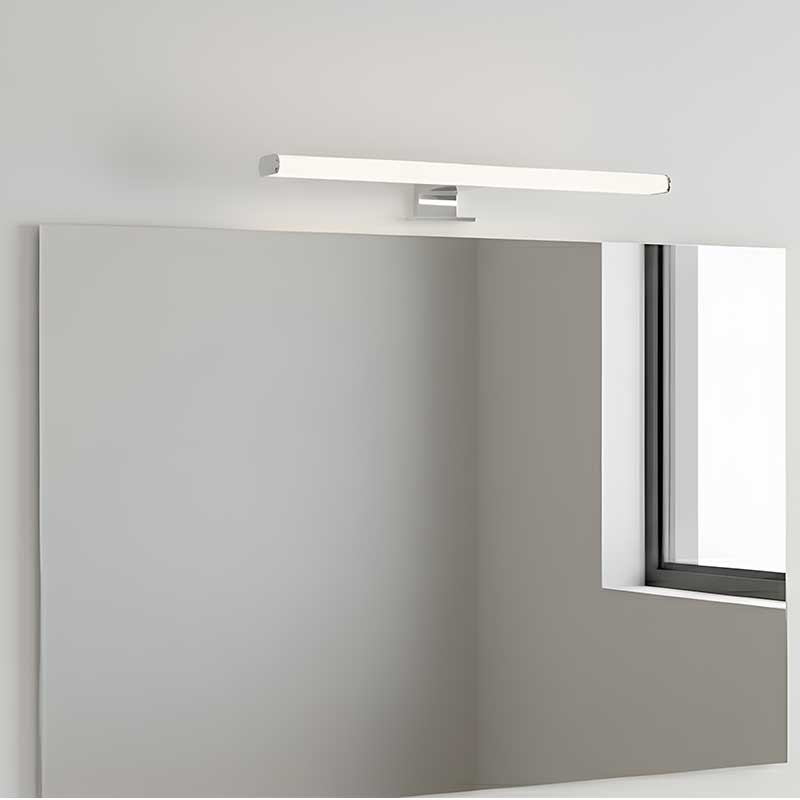 Gracias a su protección IP44, es apto para zonas húmedas, proporcionando seguridad y durabilidad. Disponible en tres tamaños (35, 60 y 80 cm), se adapta a distintos formatos de espejo y estilos de baño, siempre con una instalación rápida mediante enganches incluidos.