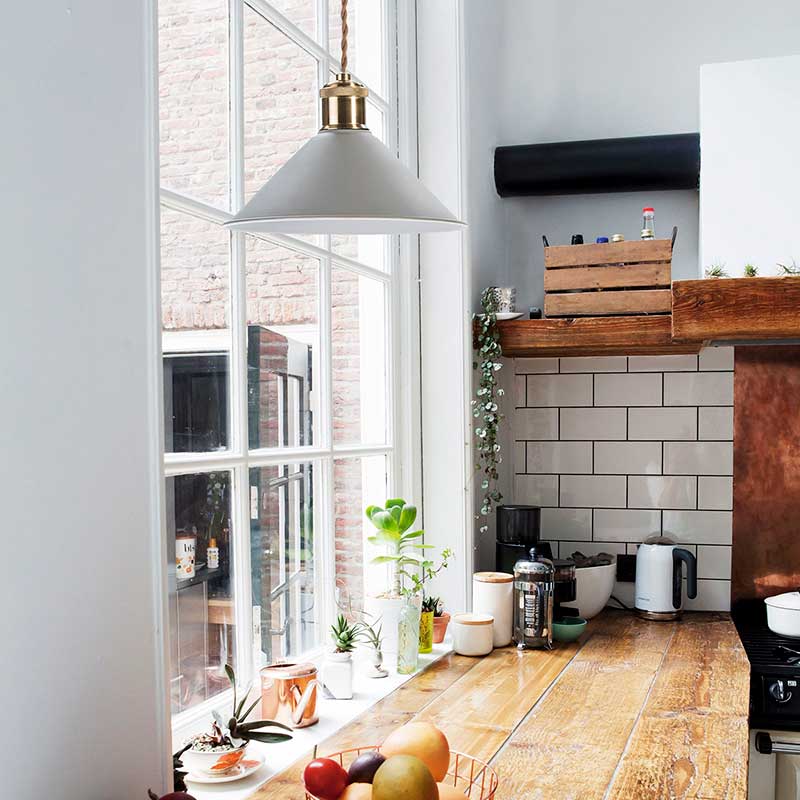El colgante AMADEO destaca por su diseño minimalista y refinado, ideal para espacios modernos con un toque cálido y natural. Su cuerpo metálico de líneas cónicas suaves proyecta una luz directa y uniforme, perfecta para iluminar zonas de trabajo, encimeras o mesas de comedor.