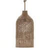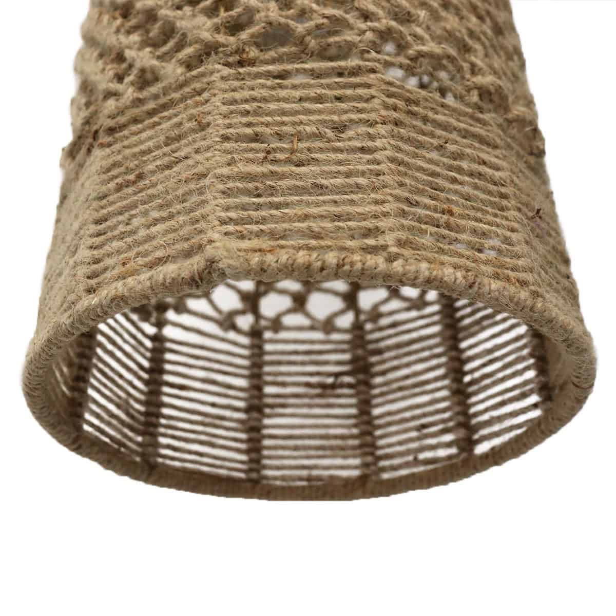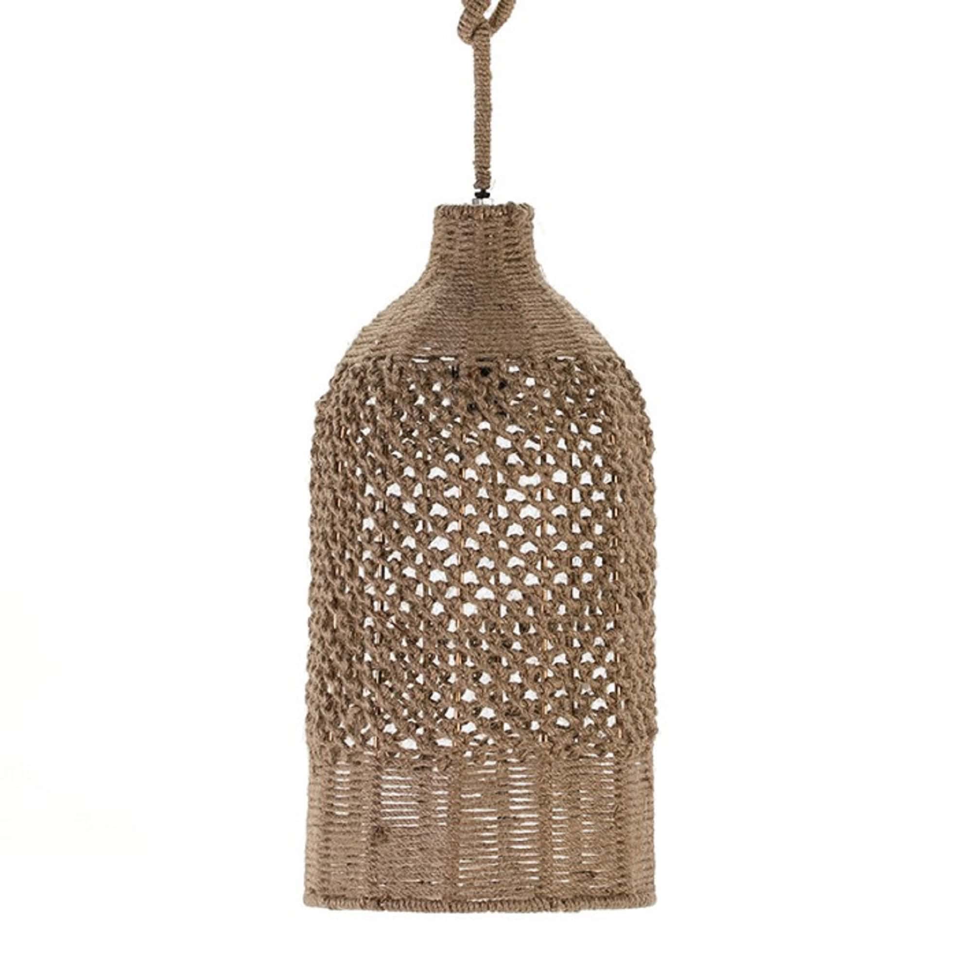 Su estructura estrecha y alargada proyecta una iluminación suave y direccional, creando una atmósfera envolvente perfecta para comedores, barras, pasillos o rincones decorativos. El trenzado manual permite el paso sutil de la luz, generando juegos de sombras naturales que aportan textura y profundidad al ambiente.