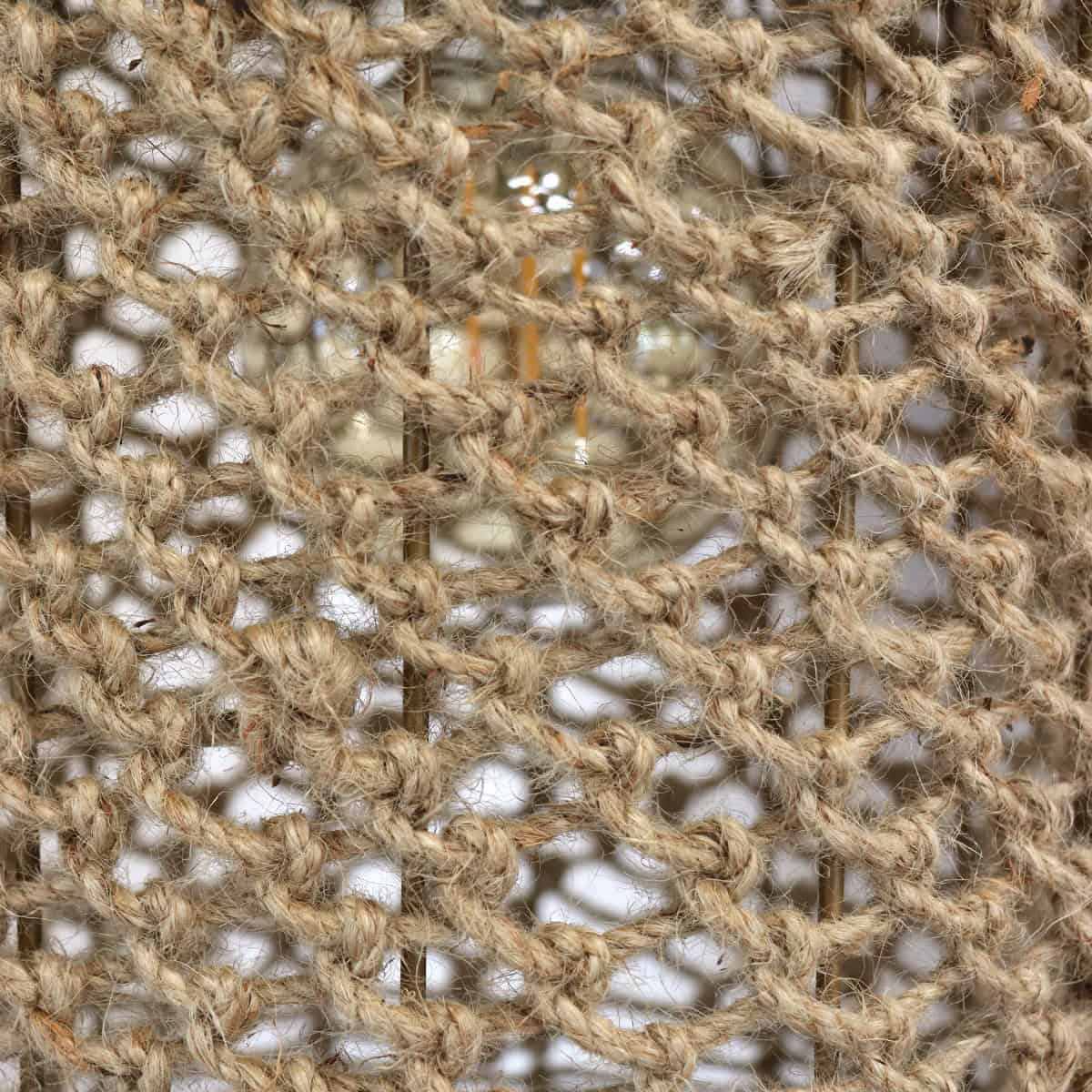 El cable de cuerda de 1,5 metros mantiene la coherencia estética con el conjunto, reforzando su carácter orgánico y artesanal. Su casquillo E27 admite bombillas LED, garantizando una iluminación eficiente y sostenible.