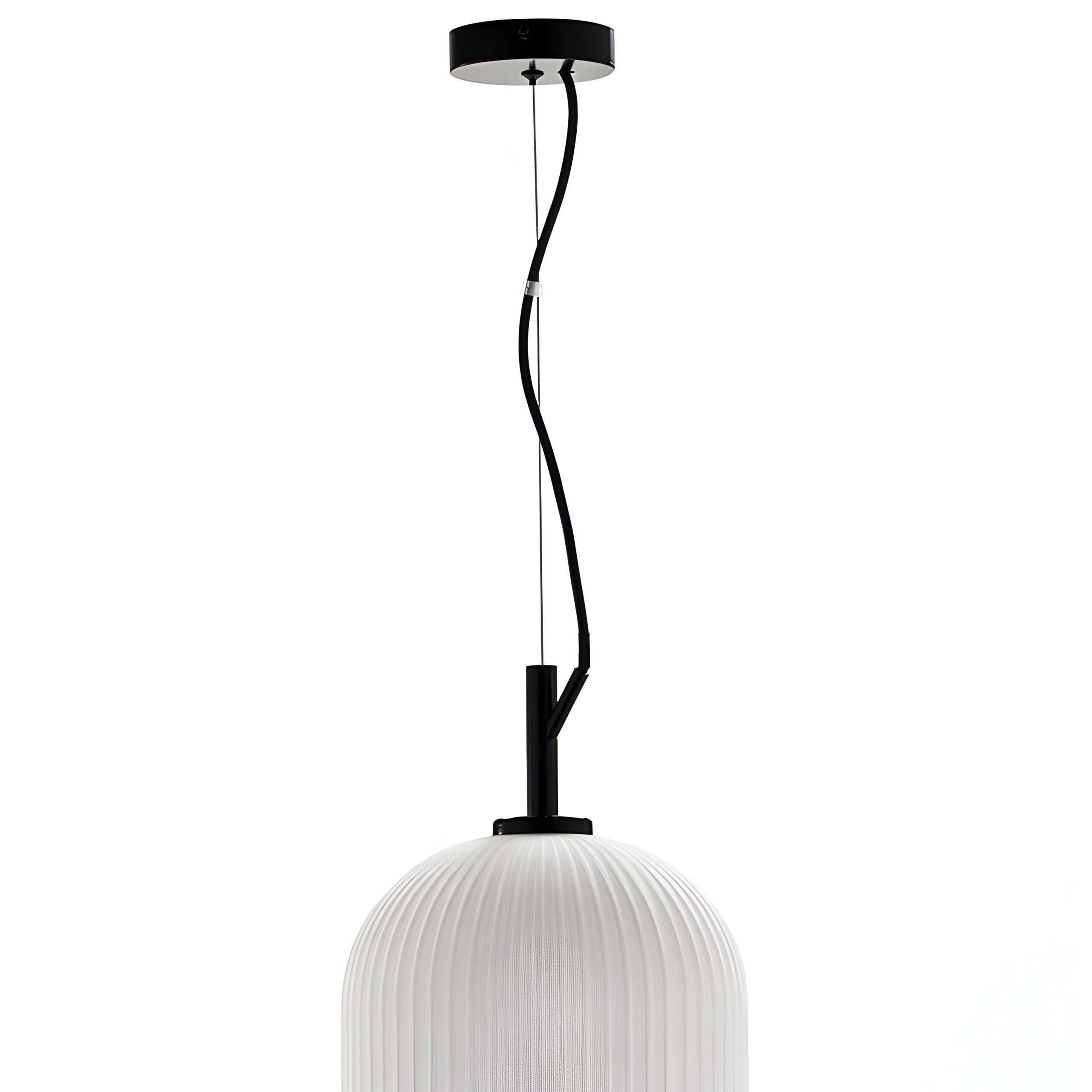 El colgante TOSCA combina la elegancia del cristal opalino con la solidez del metal, dando como resultado una pieza de iluminación de líneas suaves y refinadas. Su pantalla de cristal estriado, de acabado blanco translúcido, difunde la luz de forma uniforme y acogedora, creando un ambiente cálido y sofisticado.