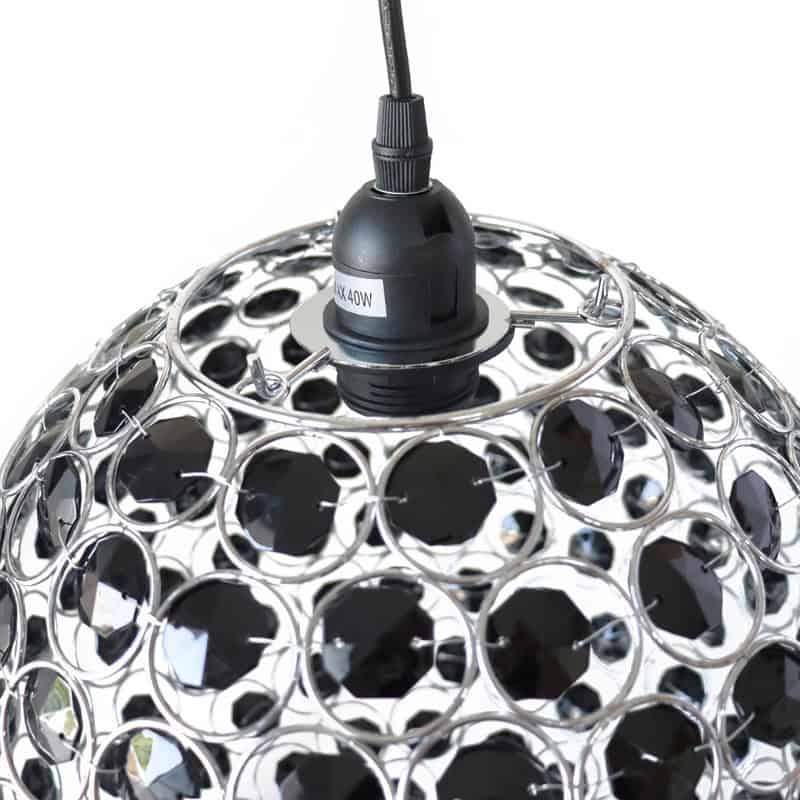 El colgante VICTORIA es una lámpara de suspensión que combina sofisticación y modernidad a través de un diseño elegante y materiales de alta calidad. Su cuerpo de acrílico facetado en tono negro, reforzado con una estructura metálica interior, crea un efecto visual único donde la luz se filtra y refleja de forma sutil, evocando el brillo de un cristal tallado.