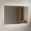 Su estructura sin marco, de líneas limpias y proporciones equilibradas, realza la estética del entorno aportando amplitud y luminosidad. Fabricado con vidrio Miralite Pure 4 mm sin plomo, asegura una reflexión nítida y natural, a la vez que cumple con criterios ecológicos y de sostenibilidad.