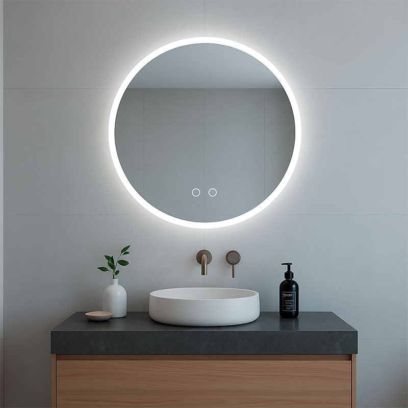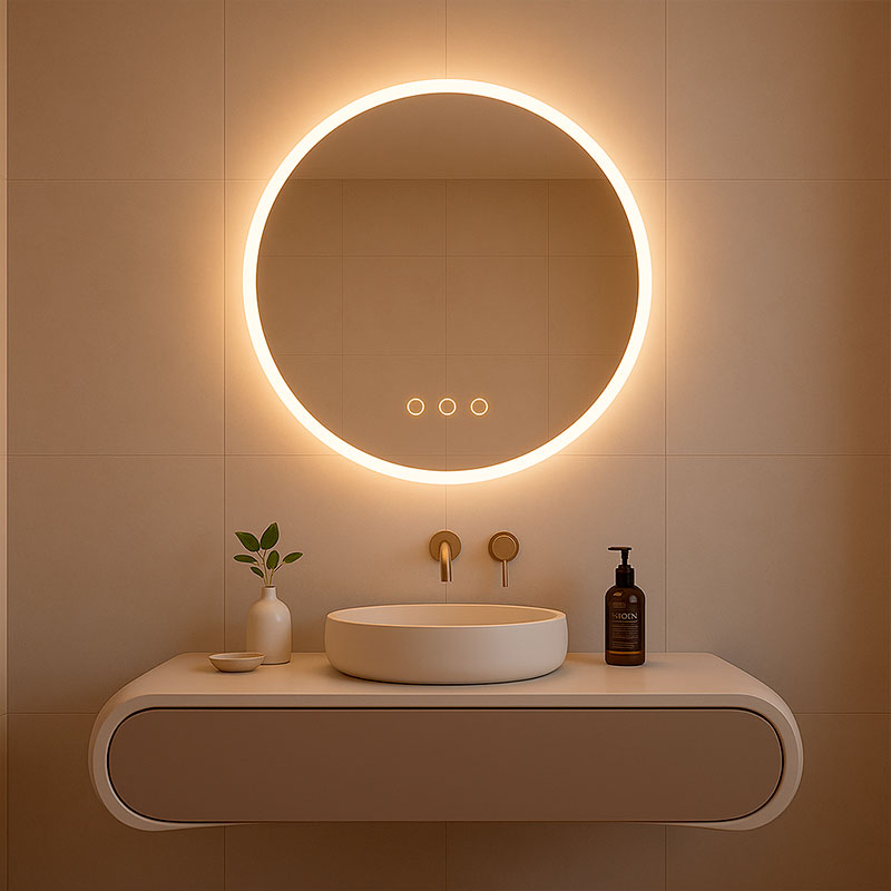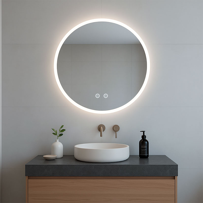 El espejo LED PÓLUX combina una estética moderna con una iluminación funcional y envolvente.