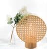 La sobremesa MIMI combina el encanto natural de la madera con la ligereza artesanal del mimbre para crear una lámpara cálida, luminosa y con un diseño atemporal. Su estructura circular con entramado trenzado permite que la luz se filtre de forma suave y envolvente, generando un ambiente acogedor y natural.