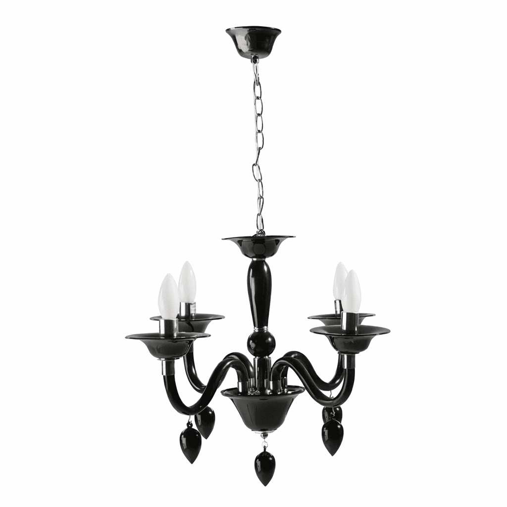 Lámpara de techo tipo araña en color negro brillo, perfecta para dar un toque elegante y sofisticado a cualquier estancia. Su diseño clásico de cinco brazos proporciona una iluminación decorativa equilibrada, ideal para salones, comedores o dormitorios.