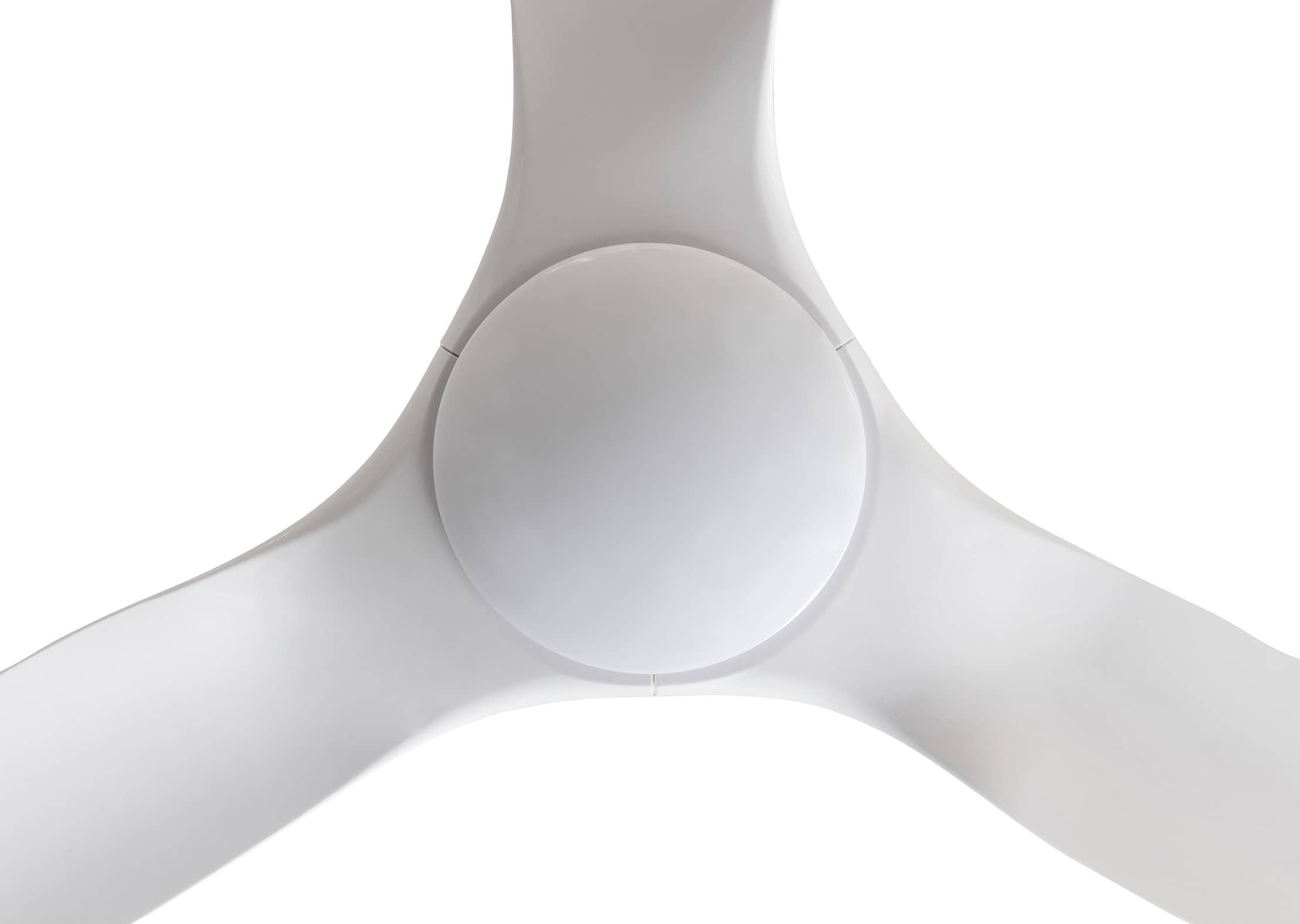 Ventilador de techo con luz LED integrada de diseño moderno y acabado en color blanco, perfecto para aportar confort y estilo a salones, dormitorios o comedores.